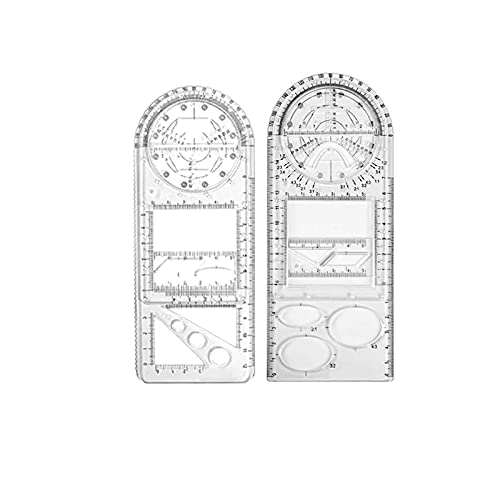 ✨ 【Righello di polifunzionalità】: la scala di misurazione multifunzione può disegnare la grafica richiesta, ad esempio: scala goniometro, bobina Y, fessura per il disegno delle funzioni, foro circolare con segno del raggio, bobina X, foro poligonale, arco circolare, fessura per filo trafilato, Righello corto attivo, parallelogramma, righello triangolare integrato, foro ovale, regolo, ecc.
