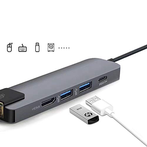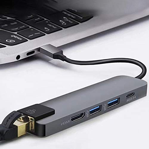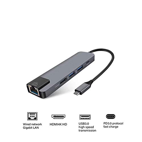 5 in 1 Multifunctional USB Type C Hub Hdmi 4K USB C Hub to Gigabit Ethernet Rj45 Lan Adapter 3 USB-C Charger - Gray