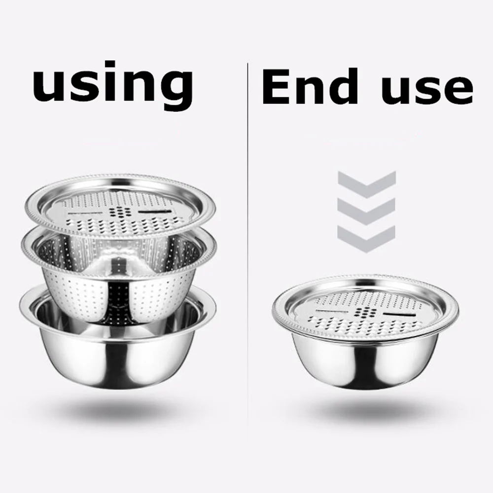Multifunctional Stainless Steel Basin Sink Kitchen Colander Fine Mesh Basket Vegetable Washing Bowl 3PCS Set Drop shipping