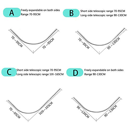 ▶ REGOLABILE: per soddisfare le diverse esigenze dei clienti, abbiamo 4 modelli: (70-95 cm * 70-95 cm) (70-95 cm * 90-130 cm) (90-130 cm * 90-130 cm) (70-95 cm * 105-165 cm). l'asta doccia curva può essere facilmente regolata in base alle dimensioni dell'angolo.