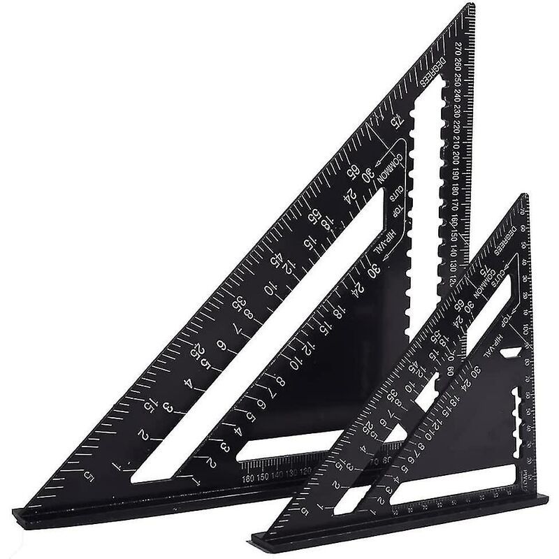 Contenuto: 1 righello triangolare metrico da 18 cm.1 righello triangolare metrico da 30 cm Stile metrico: include 1 righello triangolare metrico da 18 cm. 18 cm e 30 cm, con finitura nera opaca per prevenire l'abbagliamento, resistente alla corrosione e durevole, non facile da rompere. Nessun spigolo vivo, non danneggerà la tua mano.Qualità premium: il quadrato chevron è realizzato in lega di alluminio di alta qualità, elevata durezza, forte tenacità, non facile da arrugginire.Ampio uso: questo quadrato da falegname può essere utilizzato come goniometro, mitra, guida per sega plotter, squadra di inquadratura e righello, ideali per tutti i progetti di costruzione e ristrutturazione. Facile SEGNARE LE LINEE DI TAGLIO: questo righello triangolare utilizza un design del bordo più spesso, può essere utilizzato direttamente con la sega contro la squadra per tagli trasversali o tagli angolati utilizzando la scala incisa, che consente di segnare in modo rapido e preciso le linee di taglio