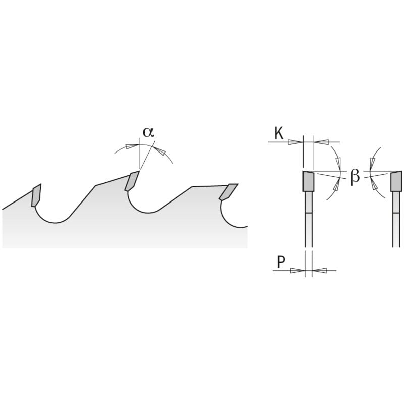 MULTILAMA C/RASANTI SP/SOTT. HW 300X2.7/1.8X70+Ch Z24+4 ATB CARATTERISTICHE TECNICHE DEI DENTI HW: Altezza dente in mm 10 Qualità, codice ISO K20 Durezza (HV10) 1.640 Resistenza flessionale (N/mm 2 ) 2.200 Impiego: per tagli lungo vena. Grazie allo spessore sottile, la lama riduce al minimo gli scarti di materiale. Macchine: multilame ad albero singolo, multi albero e scorniciatrici. Materiale: legni duri essiccati e umidi.