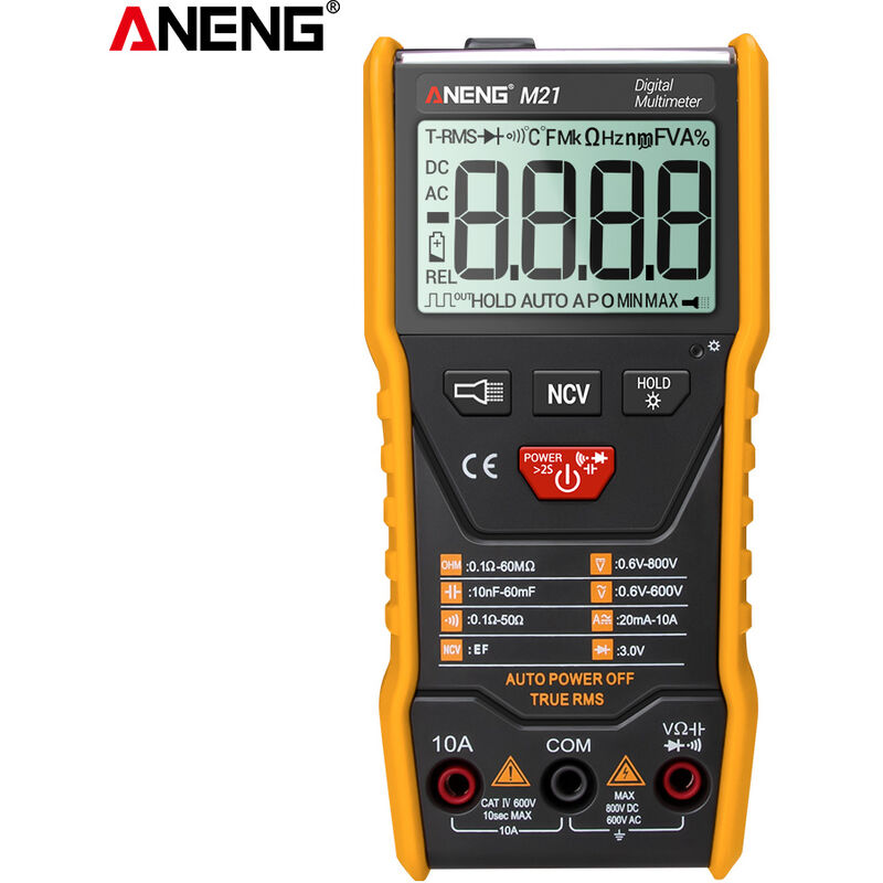 Questo prodotto è un misuratore digitale a scansione automatica RMS da 3 5/6 cifre tascabile che non richiede un quadrante per selezionare una funzione. Riconoscerà e misurerà automaticamente in base alla tensione / corrente / resistenza di ingresso. È possibile passare manualmente per misurare condensatori, diodi, test di continuità e altri parametri. Inoltre, può garantire l'elevata luminosità della retroilluminazione e della torcia anche al limite della batteria scarica. In una parola, offre prestazioni stabili, alta precisione, alta affidabilità, lettura chiara e protezione da sovraccarico, il che lo rende strumenti e strumenti di prestazione eccellenti. Questo strumento è popolare tra gli utenti. Caratteristiche: Materiale di alta qualità e componenti elettronici selezionati di alta qualità garantiscono prestazioni stabili e alta precisione. Il design tascabile, leggero ed ergonomico lo rende comodo da trasportare e utilizzare. Può funzionare come amperometro, voltmetro, ecc.