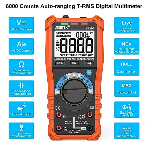 Multimetro Digitale MESTEK AC/DC Tensione Corrente 6000 Conta Autoranging TRMS per Amp Volt Ohm Hz Resistenza Continuità Diodi Frequenza Capacità Temperatura NCV Portatile Elettricista Tester