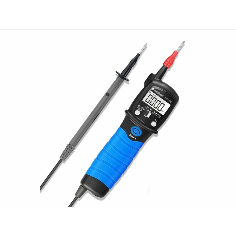 Multimetro a penna digitale ad alta precisione - Il tester di tensione misura accuratamente la corrente CA/CC da 600 mV~600 V, il tester di resistenza da 600Ω~60MΩ e il tester di capacità da 9,999 nF~99,99 mF con test diodi e cicalino di continuità. 【Multimetro multifunzione】 Design umanizzato con 6000 conteggi, test diodi, data hold, controllo automatico della portata, indicazione di batteria scarica, retroilluminazione funzionale e lampada. 【Indicazione di overrange】 Supporto per multimetro a penna HP-38C Doppio isolamento (protezione di classe II), 600 V (CAT), questo multimetro digitale a penna presenta dimensioni ridotte, prestazioni portatili e stabili, un buon strumento di tester elettrico e problemi elettrici domestici. 【Spegnimento automatico】 Quando la misurazione supera i 15 minuti senza cambiare modalità o premere il tasto, il lettore passa al mod sveglio. Premere un tasto qualsiasi per uscire dalla modalità standby. E puoi anche tenere premuto il pulsante SELEZIONA per