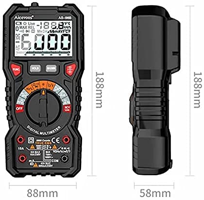 Dispositivo professionale: auto-ranging di misurazione efficace (True-RMS). Un tuttofare che rileva tensione CA/CC, corrente CA/CC, capacità, temperatura, frequenza, tempo di accensione, resistenza, continuità e diodi, conduttori di fase. Ampia gamma di misurazione, alta precisione. È quindi adatto sia in ambito profilato che in casa.