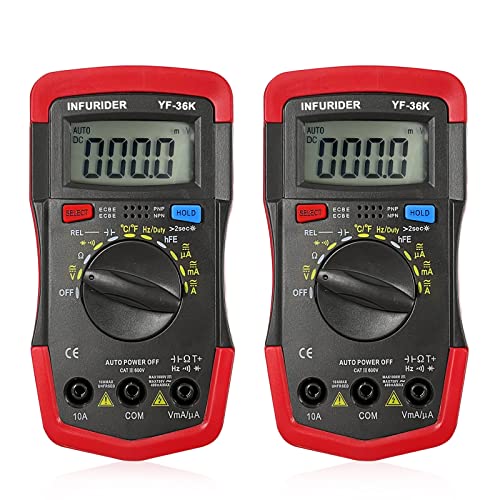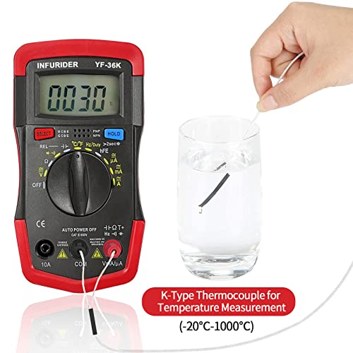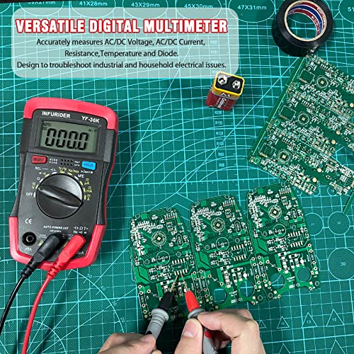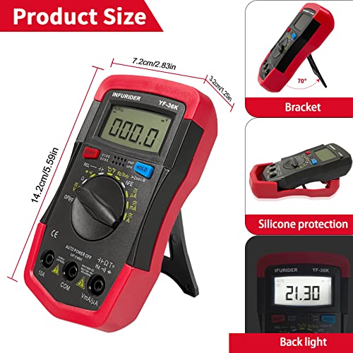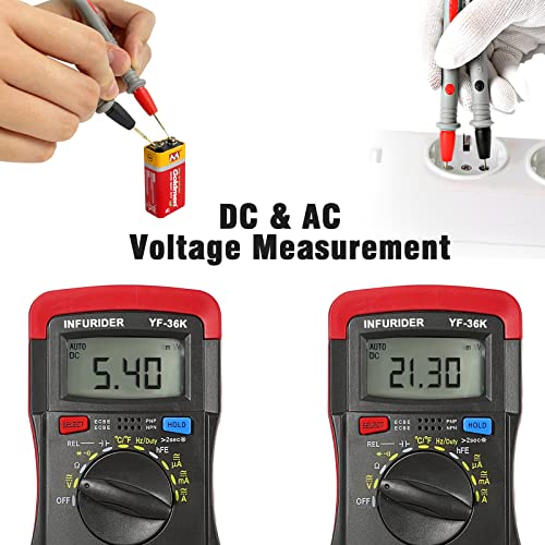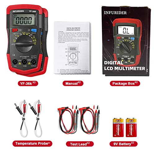 ✔【TUTTI GLI ACCESSORI SODDISFANO LE TUE ESIGENZE】Il pacchetto include 2 * YF-36K Multimeter Tester, 2 * cavi di prova (coppia), 2 * sonda di temperatura, 2 * 9V (6F22) batteria, 2 * custodia protettiva, 2 * manuale utente. INFURIDER con una garan