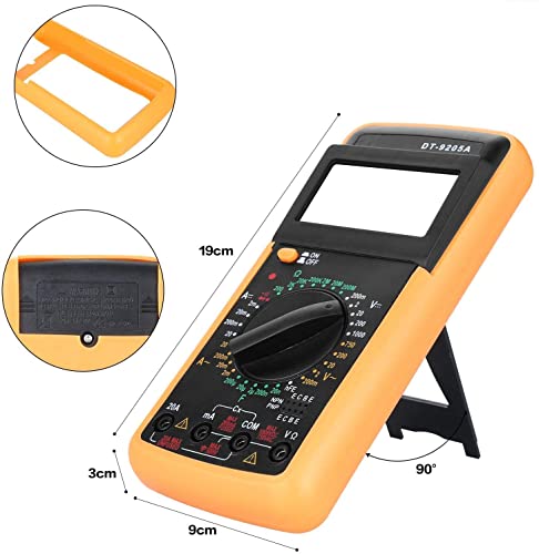 【Convenienza supporto apribile】 Il colore della copertura protettiva del multimetro è in plastica arancione, antiscivolo e leggermente morbido, per evitare cadute, impatto leggero, il supporto a scomparsa può essere tenuto in mano o posizionato ad un angolo di 45 gradi, rendendo facile la visualizzazione dello schermo.