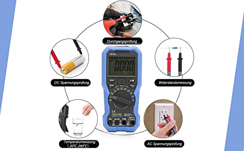 Può misurare tensione e corrente CC/CA, resistenza, capacità, frequenza, rapporto di servizio, temperatura e altri parametri.
