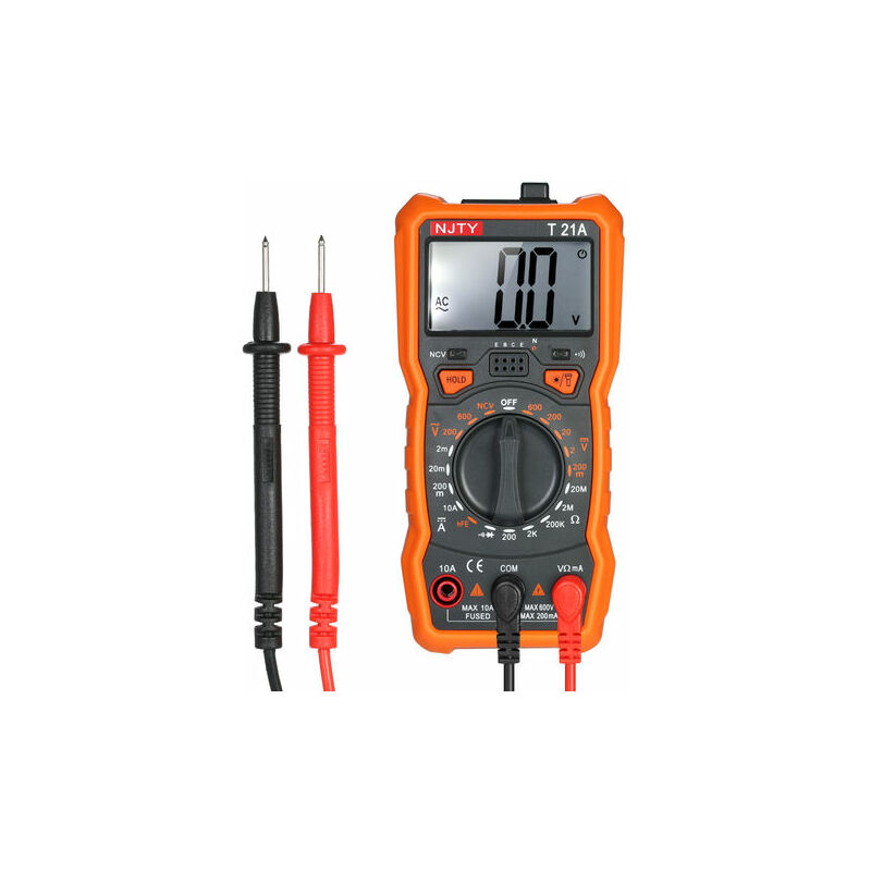 Paura di commettere errori di masterizzazione quando si utilizza il multimetro per la prima volta? Vuoi una visualizzazione della gamma più accurata in 2000 conteggi, leader nella tecnologia odierna? Puoi scegliere il nostro multimetro NJTY. Questo nuovissimo multimetro multifunzionale con processore MCU ad alta precisione e ad alte prestazioni può misurare la tensione CC/CA, la corrente CC, la resistenza. Può anche testare NCV (tensione senza contatto), transistor hFE, diodo e continuità. Con un supporto sul retro, comodo per appoggiarlo sul tavolo e leggere i valori.