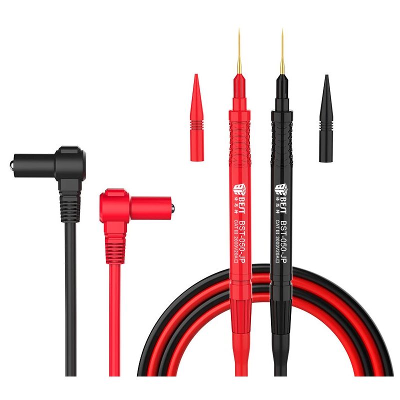 Caratteristiche: Sonda sostituibile Sonda superconduttiva Misura precisa Trasmissione rapida p> Proteggi gli aghi a punta fine dai danni, grazie all'anello di frizione, è più facile e sicuro sostituire la sonda Applicabile a tutti i tipi di multimetri, con una forte capacità di sovraccarico di corrente Design speciale dell'anello: rafforzare la connessione Conduttore in rame 168 root 0.08AS, trasmissione rapida Silicone morbido - resistenza al calore e al freddo Specifica: Modello: BST-050-JP Lunghezza sonda: 45 mm Diametro della punta: 0,1 mm Classe di sicurezza: CAT III 2000V 20A Materiale: rame + silicone + PC Lunghezza cavo: 30 pollici / 76 cm Lunghezza impugnatura: 190 mm Peso: 91 g Dimensioni confezione: 45x25x200mmConfezione inclusa: 1 x una coppia di puntali multimetro