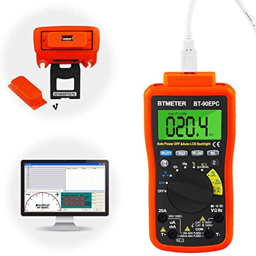 【Collegamento al computer con USB】Gli utenti possono collegare il multimetro a un computer per la registrazione in tempo reale. Installa il software sul tuo PC dal CD incluso, imposta la frequenza di campionamento sul software, collega il multimetro al PC tramite l'USB incluso. Aspetta che i dati misurati vengano trasmessi sul tuo PC. Quindi è possibile controllare, registrare, archiviare, stampare o analizzare i dati sul PC.