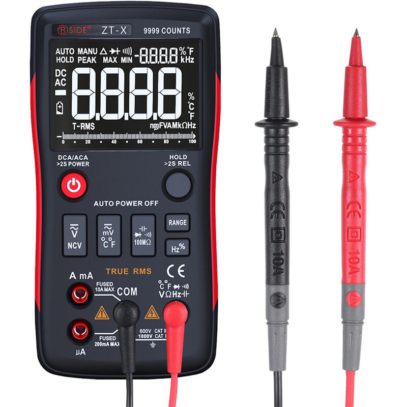Controllo: Intervallo automatico/manuale Tempo di campionamento: circa 3 volte/secondo Intervallo di tensione CC: 999,9 mV/9,999 V/99,99 V/999,9 V/9,999 mV/99,99 mV Risoluzione tensione CC: 0,1 mV/0,001 V/0,01 V/0,1 V/0,001 mV/0,01 mV Intervallo tensione CA: 999,9 mV/9,999 V/99,99 V /750.0V/9.999mV/99.99mV Risoluzione tensione CA: 0.1mV/0.001V/0.01V/0.1V/0.001mV/0.01mV Risposta in frequenza CA Voltaggio: 40Hz~1kHz Intervallo di corrente CC: 9,999 A/999,9 mA/99,99 mA/9999 μA Risoluzione corrente CC: 0,001 A/0,1 mA/0,01 mA/ 1μA Intervallo di corrente CA: 9,999 A/999,9 mA/99,99 mA/9999 μA Risoluzione corrente CA: 0,001 A/0,1 mA/0,01 mA/1 μ A Intervallo di resistenza: 99,99Ω/999,9Ω/9,999kΩ/99,99kΩ/999,9kΩ/9,999MΩ/99,99MΩ Risoluzione della resistenza: 0.01Ω/0.1Ω/0.001kΩ/0.01kΩ/0.1kΩ/0.001MΩ/0.01MΩ Intervallo di capacità: 9.999nF/99.99nF/999.9nF/9. 999μF/99.99μF/999.9μF/9.999mF Risoluzione capacità: 0.001nF/0.01nF/0.1nF/0.001μF/0.01μF/0.1μF /0.001mF Intervallo di frequenza