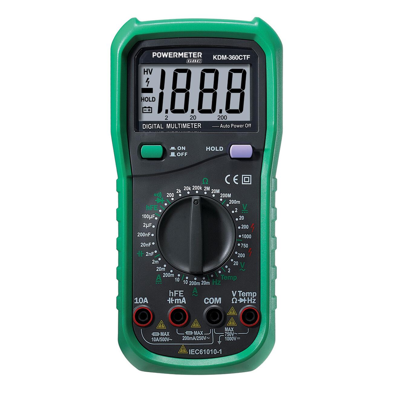 Multimetro digitale con capacimetro, frequenzimetro e termometro. Dotato di circuiti di protezione da sovraccarichi;
