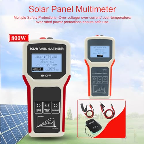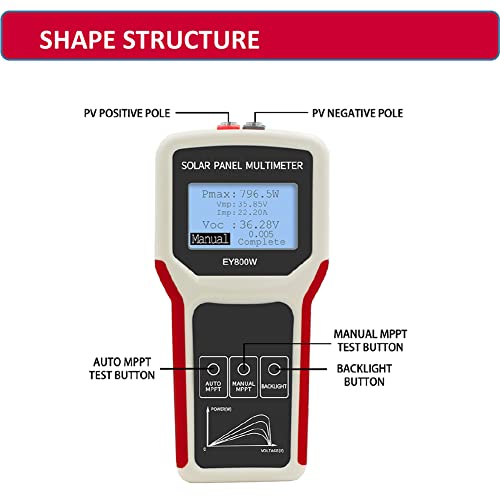 Multimetro per pannelli solari, Rilevamento automatico/manuale MPPT Tester per pannelli solari MPPT con display LCD retroilluminato Strumento per test di tensione circuito aperto Protezione sicurezza