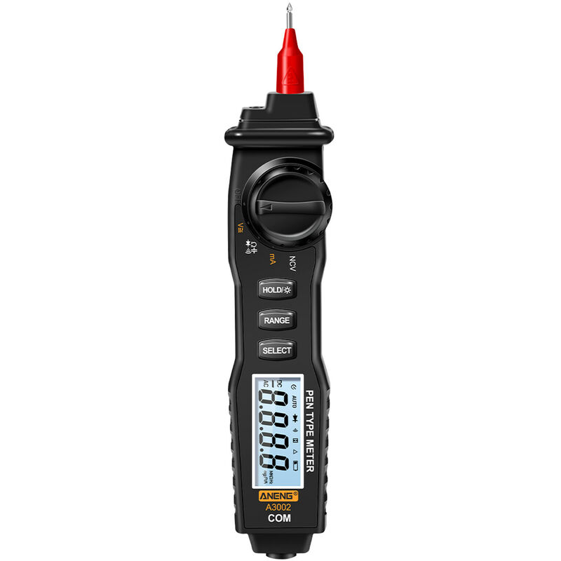 Specifiche: Materiale: ABS Colore: arancione/nero (opzionale) Alimentazione: 2 * AAA batteria (NON inclusa) Intervallo di misurazione: Tensione CC: 400 mV/4 V/40 V/400 V/600 V Tensione CA: 4 V/40 V /400V/600V Resistenza (OMH): 400/4k/40k/400k/4M/40M Diodo: 4V Corrente CC: 40mA/200mA Corrente CA: 40mA/200mA Capacità: 4nF/40nF/400nF/4μF/40μF/400μF/4mF Dimensione articolo: ca. 134 * 39 * 26,6 mm / 5,28 * 1,54 * 1,05 pollici Peso dell'articolo: ca. 67 g / 2,36 once Dimensione del pacchetto: ca. 240 * 80 * 35 mm / 9,45 * 3,15 * 1,38 pollici Peso del pacchetto: ca. 130 g / 4,59 once Lista di imballaggio: 1 * Multimetro a penna 1 * Cavi di prova 1 * Manuale dell'utente (inglese)