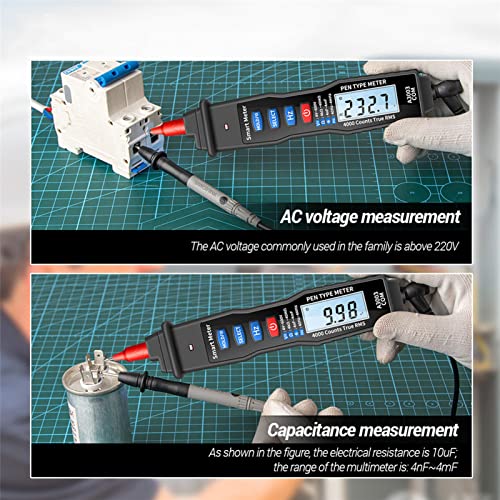 Multimetro a penna multifunzione: questo multimetro digitale a penna può eseguire misurazioni di tensione 4V-600V AC/DC, resistenza 4kΩ-40MΩ, capacità, test di frequenza, rilevamento del cicalino dell'interruttore, rilevamento di zero incendi, ecc.