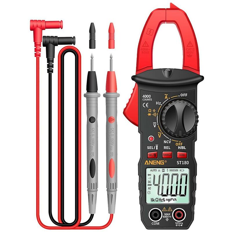 Questa pinza amperometrica multifunzionale include funzioni per misurare tensioni CA e CC, correnti CA, resistenza, capacità, frequenza, test diodi, test NCV, ecc. È compatto, estremamente preciso e facile da usare. Resistenza, capacità, frequenza, diodo, cicalino acceso/spento, test di carica. Pinza amperometrica ad alta precisione: pinza amperometrica intelligente per misurare la corrente senza disconnessione. Retroilluminazione HD brillante, accensione/spegnimento attivabile, visualizzazione dei dati chiara. Data Hold: Contiene i dati di misurazione per una facile visualizzazione o scrittura dei dati. Elevata affidabilità ed efficienza: Allarme cicalino a LED, buona affidabilità e precisione, ideale per il collaudo e la manutenzione di apparecchiature elettriche Ganasce da 9,7 mm: Ganasce da 9,7 mm per la misurazione della corrente senza contatto o disconnessione Alimentazione e spegnimento automatico: Alimentata da 2 batterie AA da 1,5 V (non incluse), la pinza amperometrica si