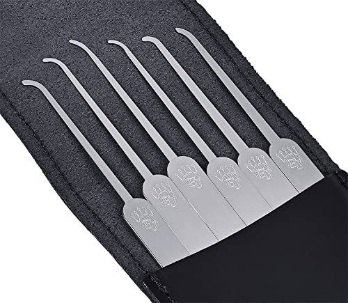✅ Il set ELITE 6 Hook Profi Dietrich Pick è diviso in 6 picchi, per aprire porte chiuse o sbattute. Viene fornita anche una "custodia in vera pelle" con chiusura a bottone automatico.