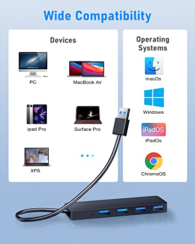 【Compatibilità universale】Il nostro hub USB 3.0 è compatibile con una vasta gamma di dispositivi, tra cui MacBook, Mac Pro, iMac, Surface Pro, XPS, notebook PC e molti altri. Funziona con Windows 10/8/8.1/7/Vista/XP, Mac OS X, Linux e Chrome OS.