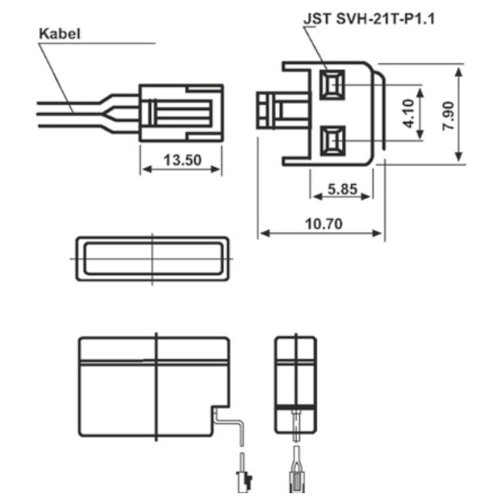 Multipower MP0.8-12JST - Batteria al piombo/tecnica in tessuto non tessuto, 12 V, 800 mAh, compatibile con JST