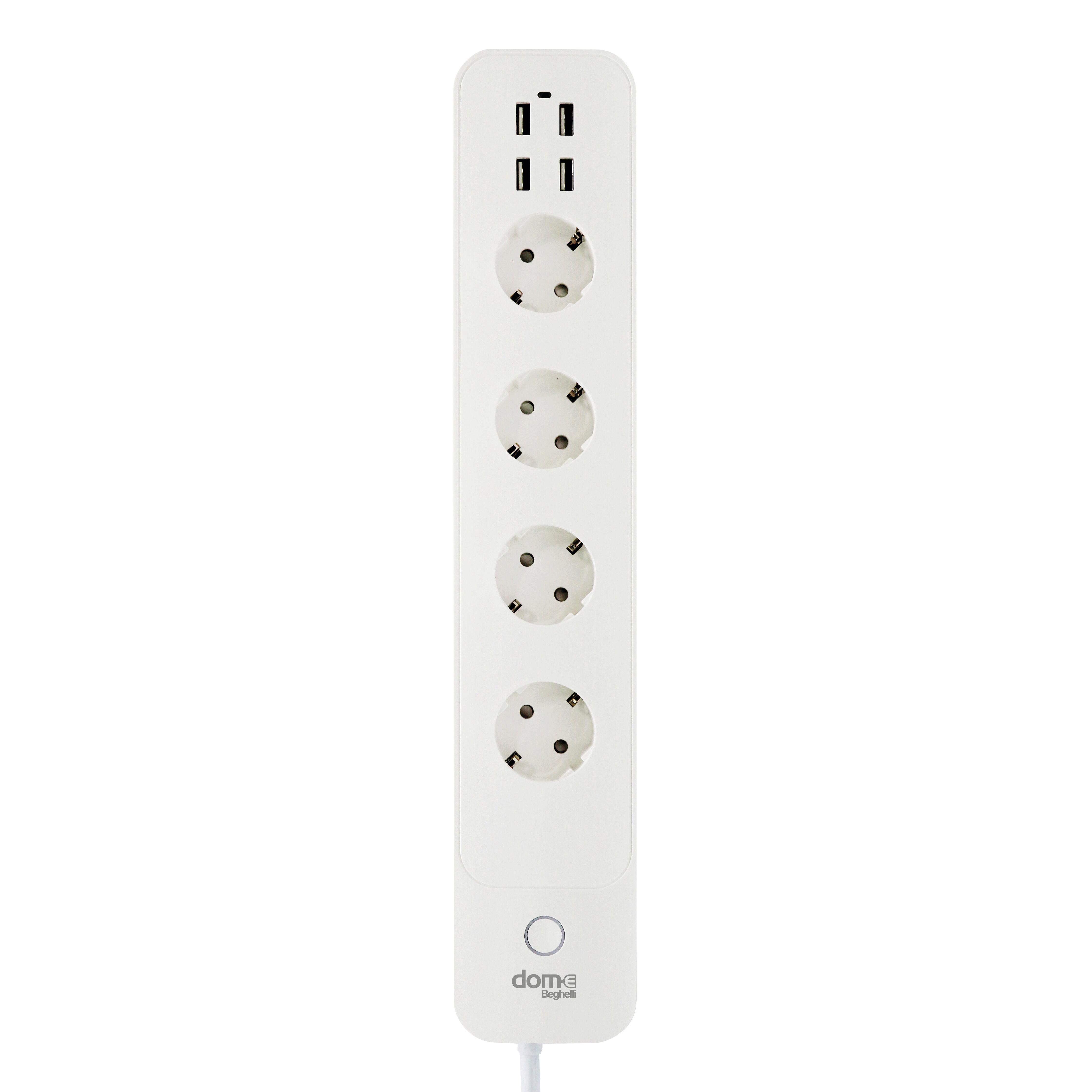 Multripresa smart che si controlla dallo smartphone tramite la rete wi-fi con 4 uscite usb+4prese 10/16A, comandabile e programmabile da app, misura i consumi