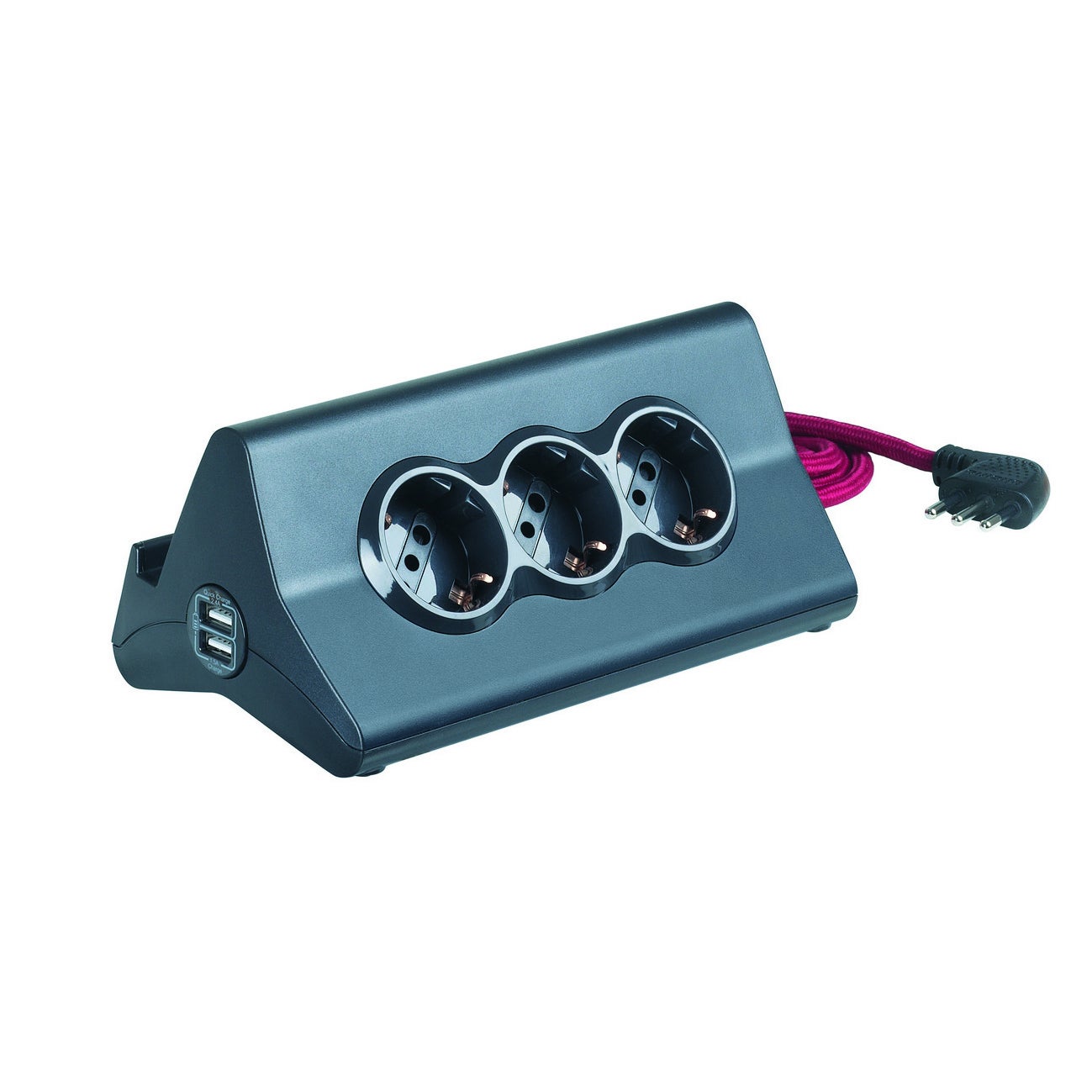 3 prese schuko + 2 prese USB, spina 10A. Ideale per scrivania