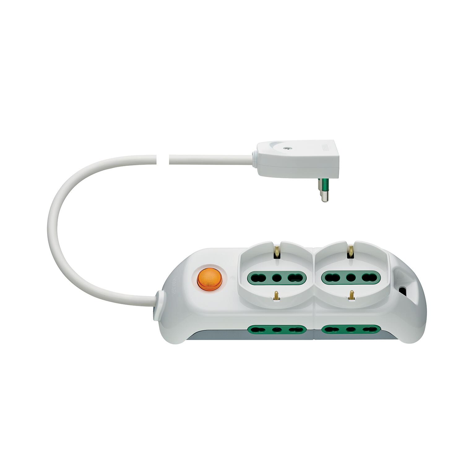 4 prese bipasso + 2 prese universali, spina 16A, cavo 1.5M. Con interruttore