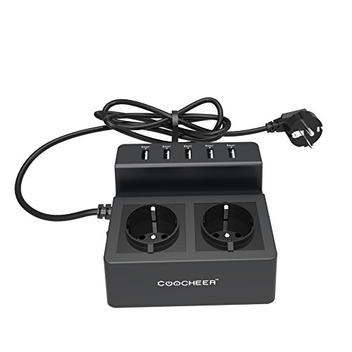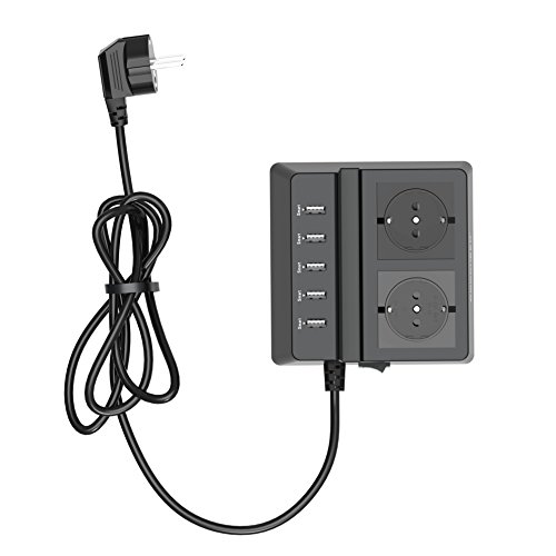 Multipresa Ciabatta Elettrica 4 presa,Ciabatta presa Base USB con 5 porte,Caricabatterie per Samsung, IPad, Iphone e altri dispositivi (nero)