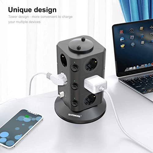 Multipresa Ciabatta Elettrica USB da Scrivania 11 Posti 10/16A Polivalenti (schuko prese) e 2 Porte USB Presa con Indipendente, Protezione Sovraccarico, Surge Arrest Essential, Cavo 2 m di SAFEMORE