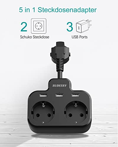 Multipresa USB Ciabatta 2 Prese, Cavo corto 5 in 1 con 3 porte USB - Presa di corrente USB per cucina e ufficio - Nero