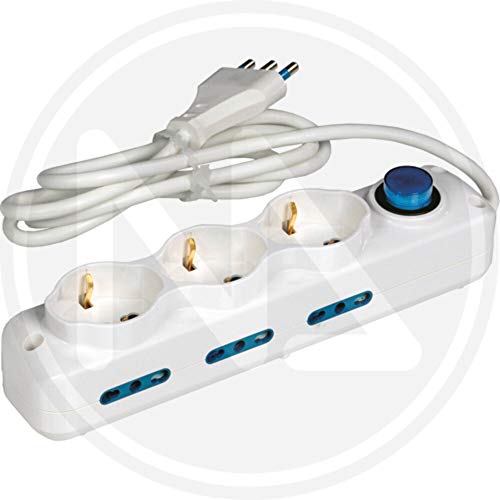 Multipresa Ciabatta 3 Prese Schuko +6 Prese Laterali Bip.Bianca con Interruttore