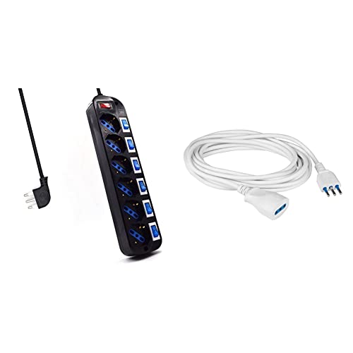 Prodotto 1: Con interruttori indipendenti luminosi su ogni presa più un interruttore generale: permette il controllo di ogni singola presa e il risparmio energetico.
