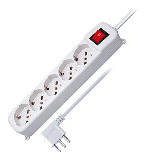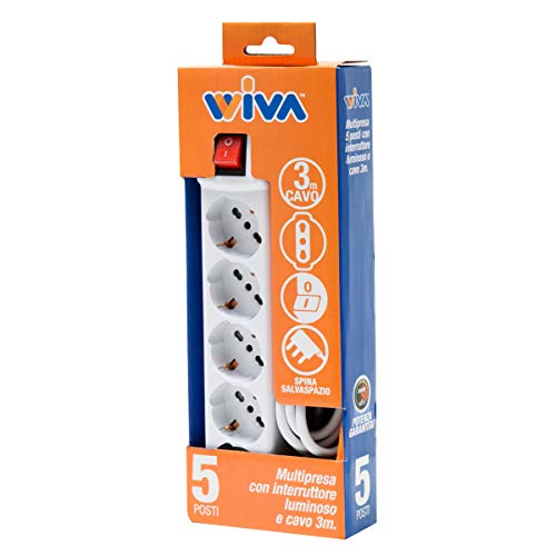 WIVA Multipresa 5 Posti con Interruttore Luminoso, Cavo 3mt (Bianca)