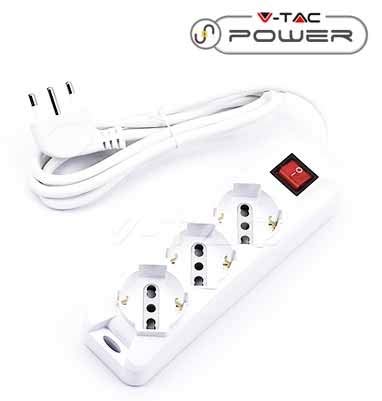 Multipresa con Cavo 1,5mt 3 Prese 10/16A Bipasso + Shuko Interruttore Luminoso e Spina 16A, Bianca