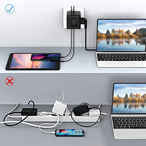 Scheda di alimentazione 6-IN-1: La multipresa cubo ha 3 prese AC e 3 porte USB (5 V 2,4 A) con cavo di alimentazione da 1,8 m, che possono essere utilizzate per computer, telefoni cellulari, spazzolini da denti elettrici, tablet, porte USB e altri dispositivi.