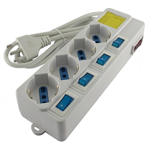 Multipresa con 4 prese bipasso 10-16A/schuko e spina 3 poli Italia 16A con interruttore generale e 4 indipendenti. lunghezza cavo 1,5m