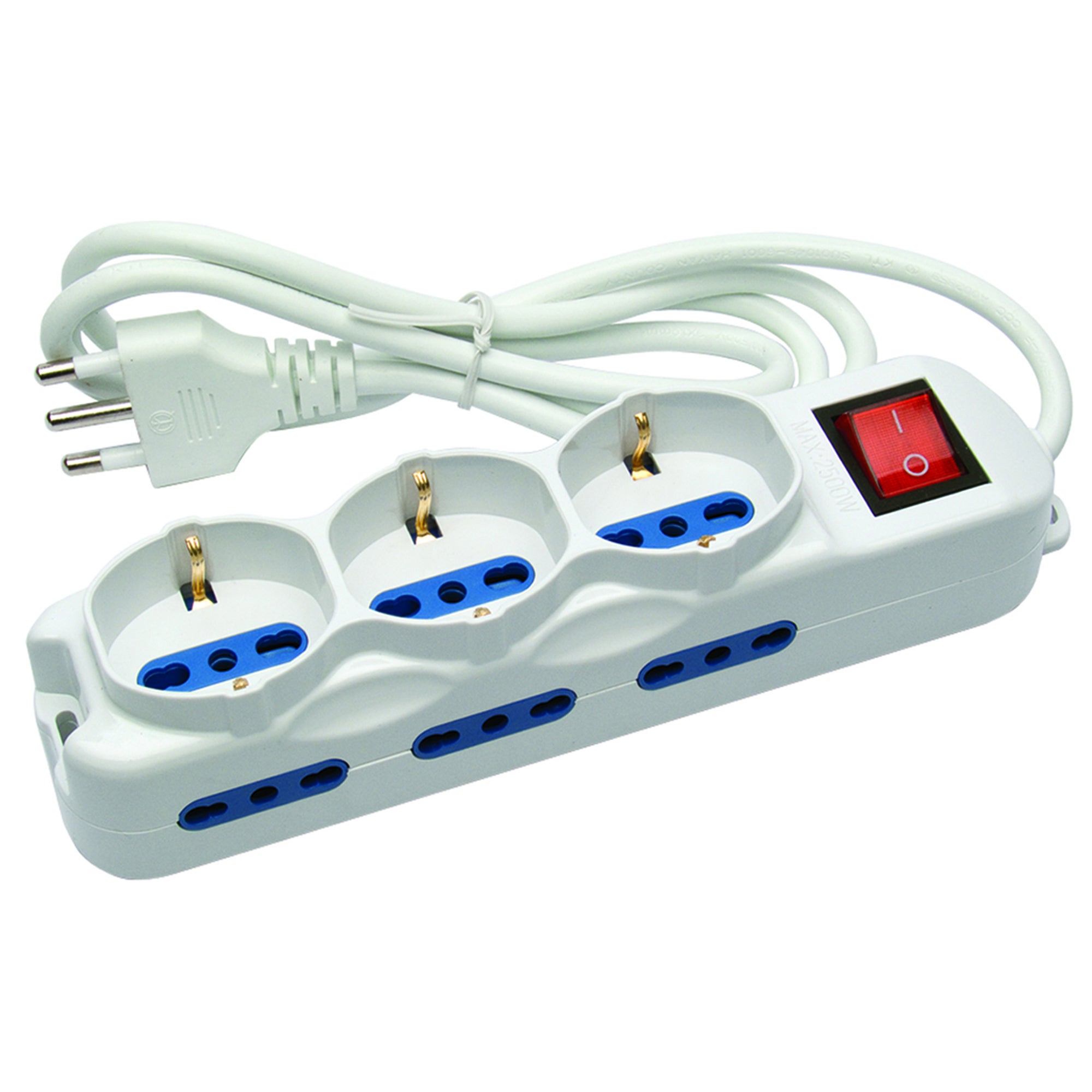6 prese bipasso + 3 prese universali, spina 16A, cavo 1.5M. Con interruttore