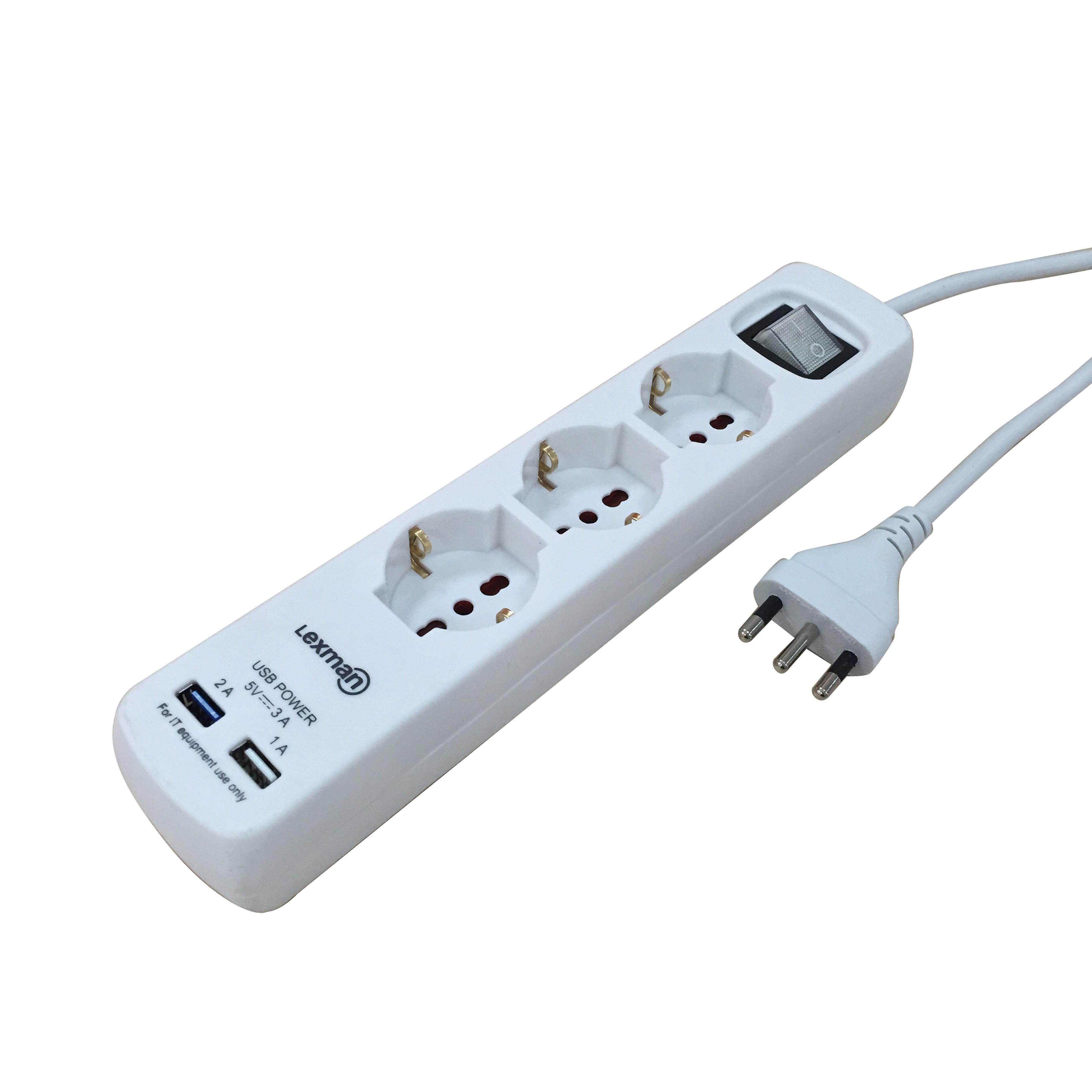 Composta da 3 prese 16A, 2 prese USB, cavo da 1.5 m, spina 16A. Dotata di salvatensione, interruttore luminoso