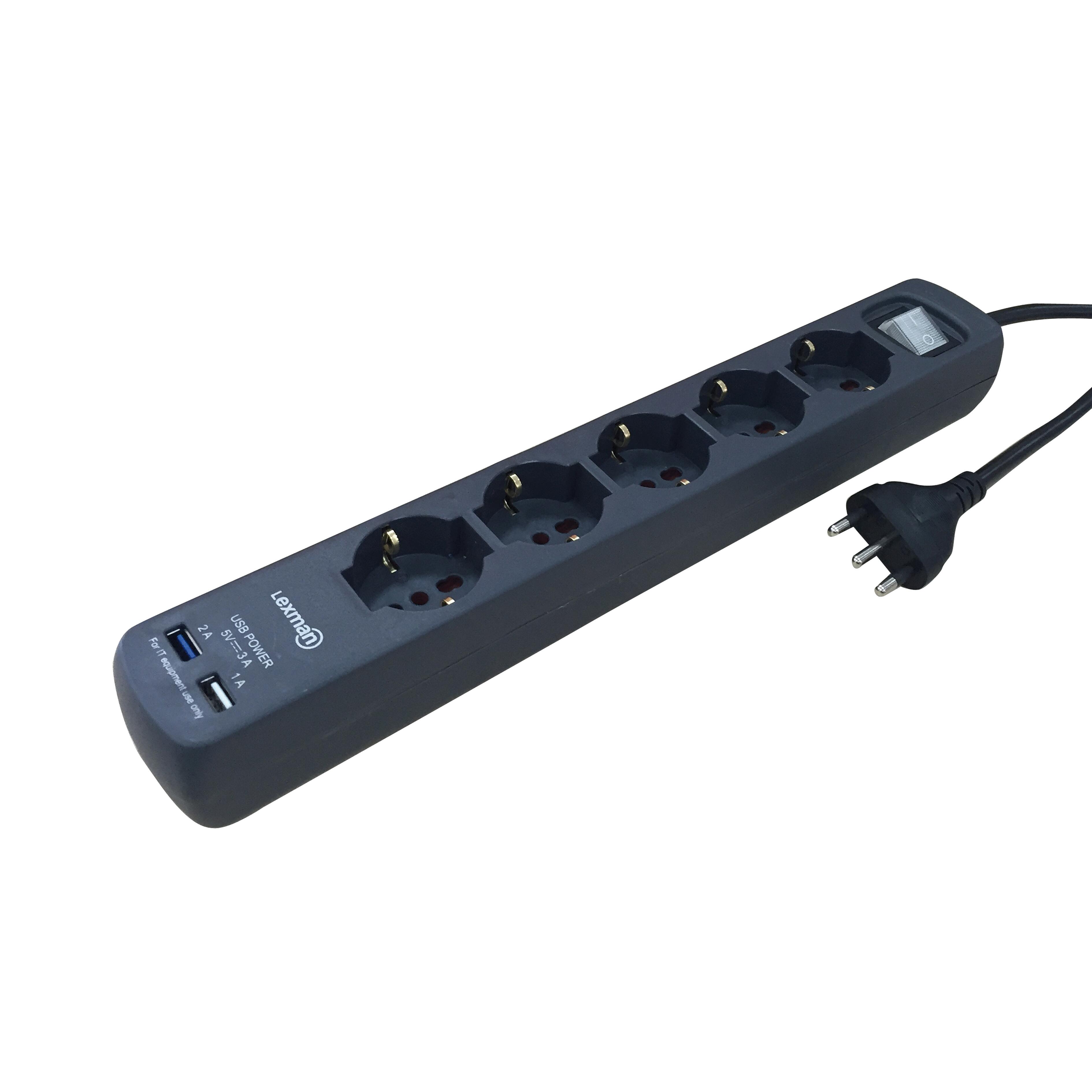 Composta da 5 prese 16A, 2 prese USB, cavo da 1.5 m, spina 16A. Dotata di salvatensione, interruttore luminoso, grado di protezione IP 20