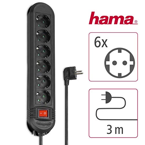 Hama - Multipresa 6 vie schuko con tasto on/off, cavo 3 metri, nero