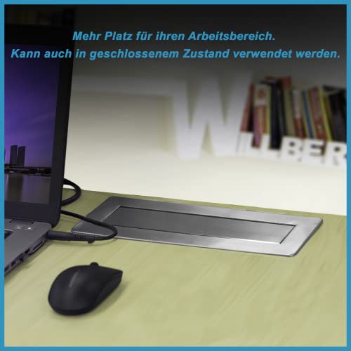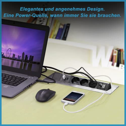 Elbe Inno Multipresa a scomparsa da incasso, prese da incasso a scomparsa con 3 prese Standard Tedesco, Presa multipla da incasso con 2 USB, 2 RJ45 LAN, in acciaio inox per tavolo, scrivania EL4703URM