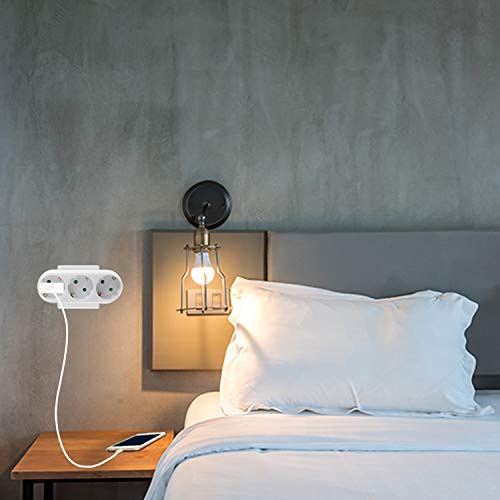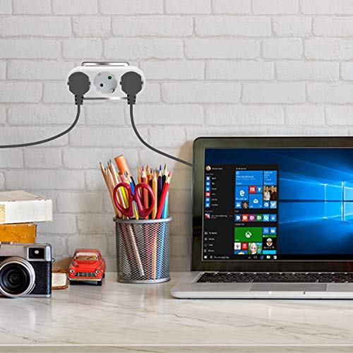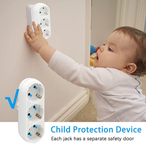 Multipresa Tripla 2 Pz, Spina Piatta Salvaspazio, Adattatore Multipresa con Spina, Prese Universali con Protezione Bambini, Prese Multiple Elettriche 16A Bianco