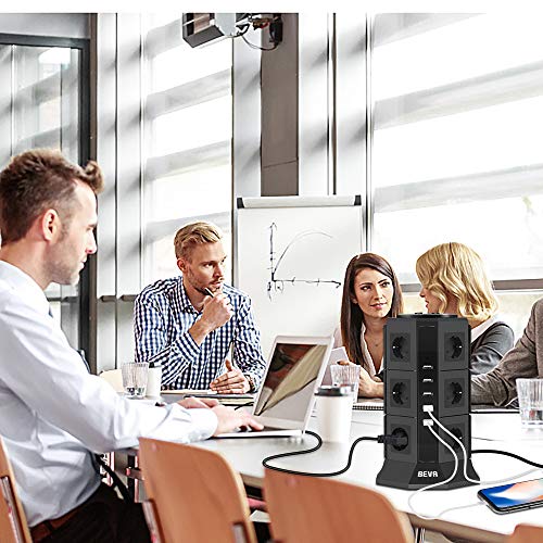 BEVA Multipresa Verticale, Ciabatta Elettrica con 5 Prese USB e 12 Prese EU, Ciabatta Multipresa con Protezione da Sovraccarico e Interruttore, 2500W/10A, Cavo 2m (Nero)