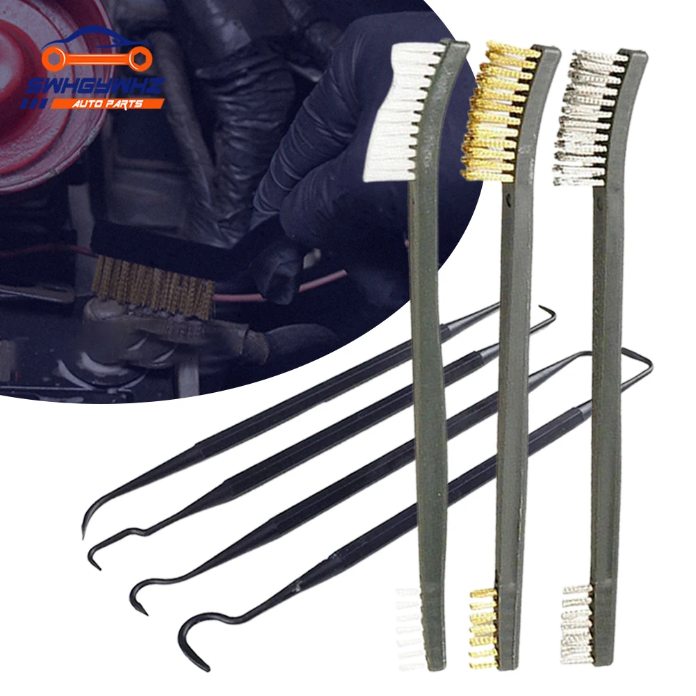 Multipurpose Car Detailing Cleaning Tool Accessories Wire Brushes and 4 Nylon Picks Pick and Brush Set 3 Double-headed Finished