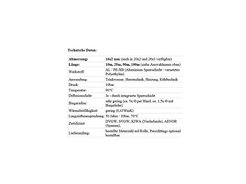 Tubo multistrato, alluminio composito 16 x 2 mm, / Al PE-Xb dopo DVGW, diffusione a tenuta, 10 m, 25 m, 50 m, 100 m ruoli, Lunghezza: 25 m