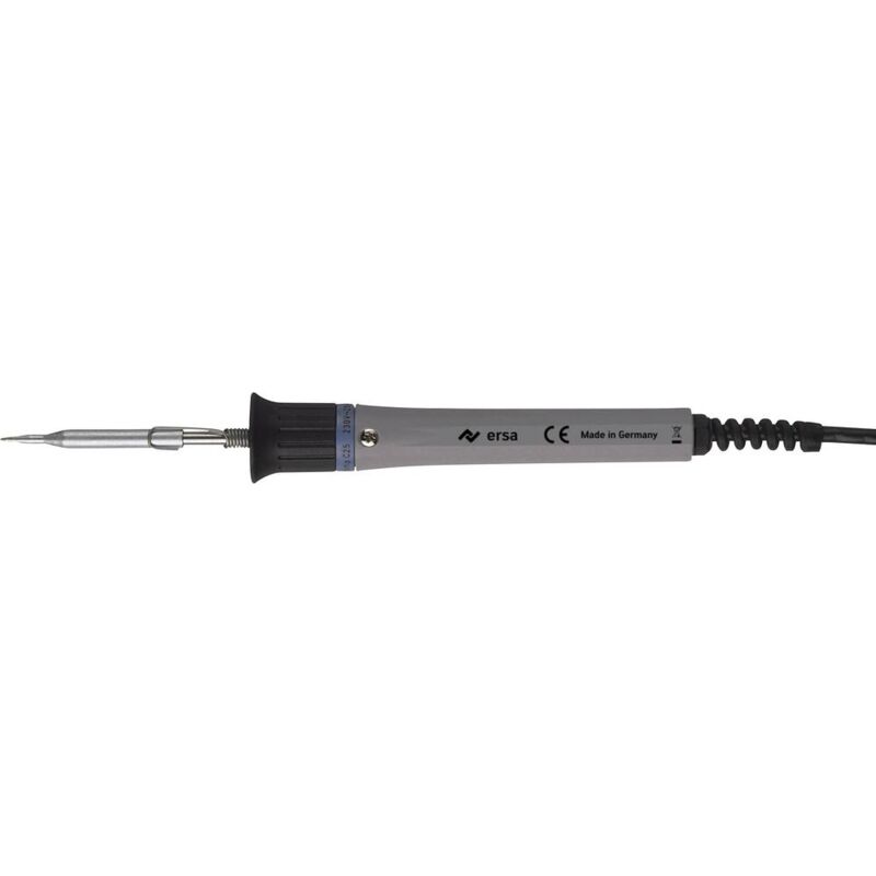 Dettagli tecnici Peso 34 g Potenza (max.) 25 W Temperatura (max.) +450 °C Tensione di funzionamento 230 V Tipo prodotto Saldatore Saldatore fine ERSA Multitip 25 W Per saldature medio-grandi su spine, barre a distributori e circuiti stampati. Adatto in particolare a serie di saldature veloci in sequenza. Punti di forza e dettagli 25 Watt Punta di saldatura riscaldata internamente Incluso nella consegna Punta di saldatura con forma matita ERSADUR Supporto per appoggio A18. Requisiti di sistema null