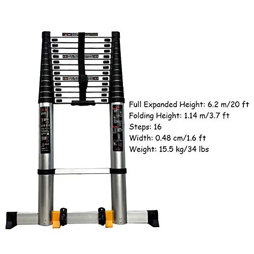 ALYR Multiuso Scala telescopica, Pesante stepladders Pieghevole Portatile Telescopica Scale a pioli Portata 150kg / 330lb per la casa Loft Ufficio,6.2m/20ft