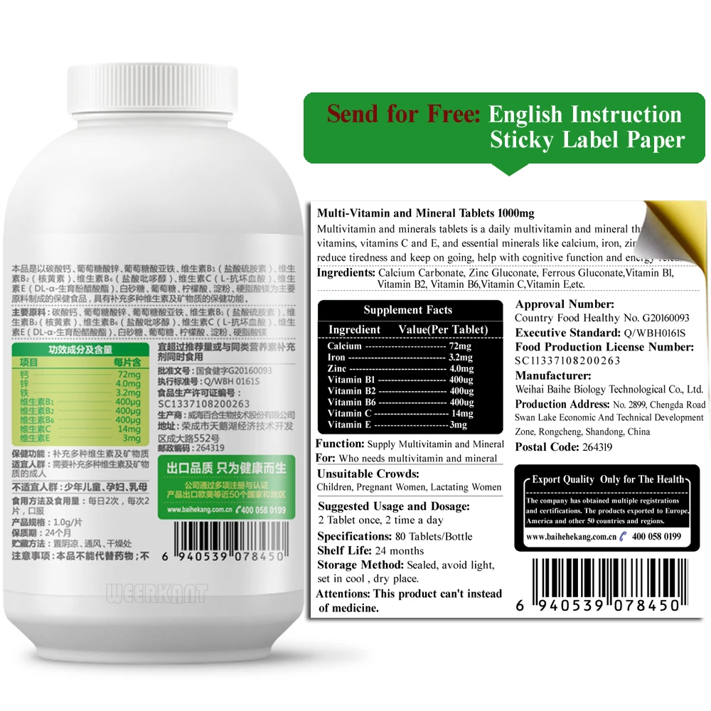 Multivitamin with Zinc Iron Calcium Multivitamins with Iron for Adults with Vitamin B1 B2 B6 C E Tablets
