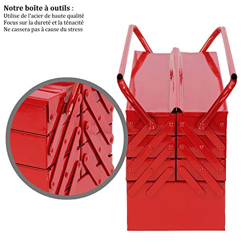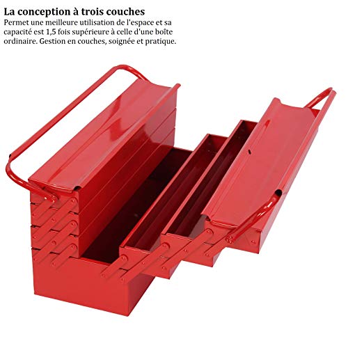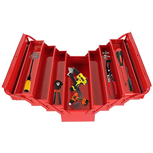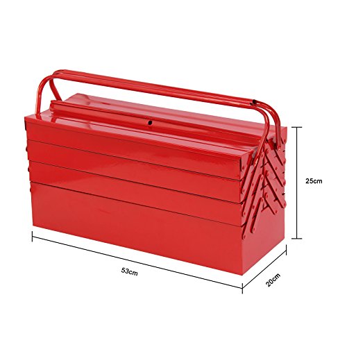 Multiware - Cassetta degli Attrezzi in Metallo a 3 Piani, di 53,3 cm con 5 Scomparti di Metallo Resistente, rosso